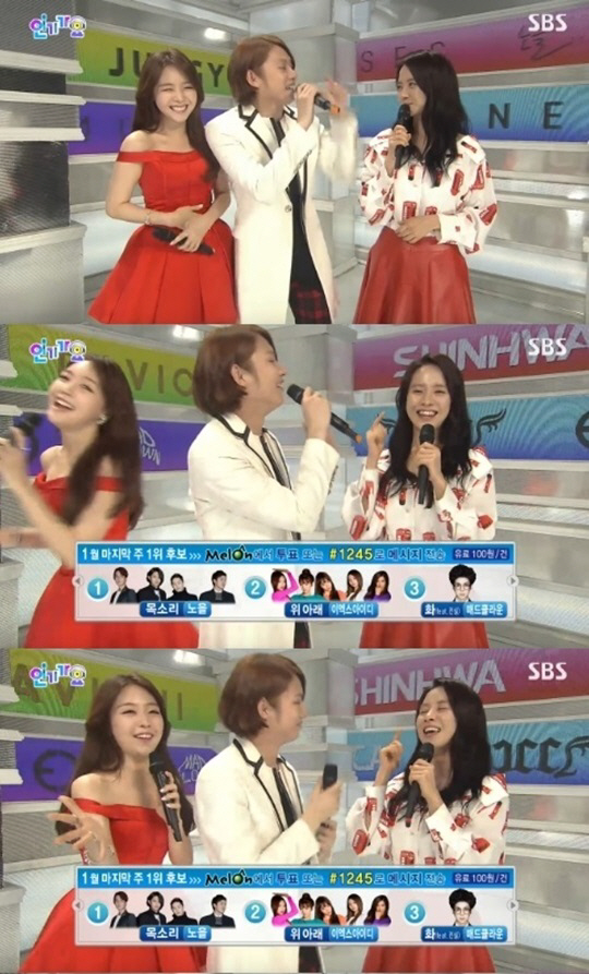 송지효의 말실수에 김희철은 '인기가요'라는 단어를 수차례 강조하며 "우리도 '인기가요'에서 '유'로 처음 1위를 했다. '인기가요'에서 민아도 1위를 많이 받았다"며 재차 '인기가요'를 강조해 보는 이들을 폭소케 했다.