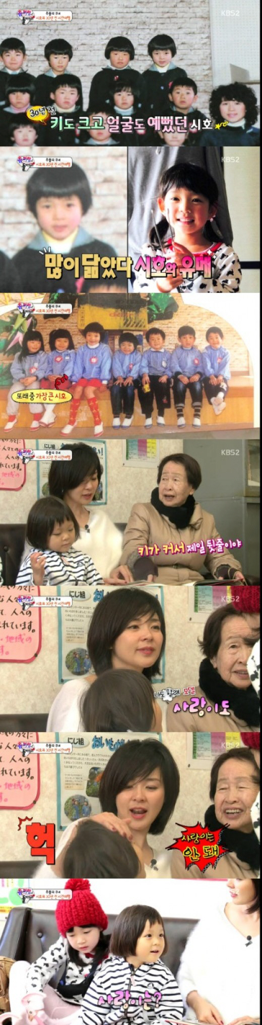 이곳에서 어린시절 야노 시호의 모습이 공개됐고, 왕할머니는 "키가 커서 제일 뒷줄이야"라고 말했다.