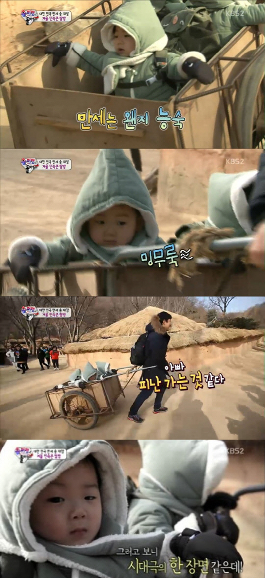 '슈퍼맨이 돌아왔다' 송일국 삼둥이 대한, 민국, 만세가 리어카에 탑승했다.