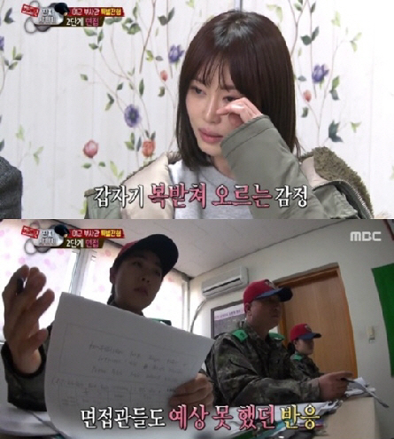 지난 25일 방송된 '진짜 사나이' 여군특집 2탄에서는 강예원이 여군 부사관 특별전형 면접을 보던 도중 과거 힘들었던 시절을 털어놓으며 눈물을 흘렸다.