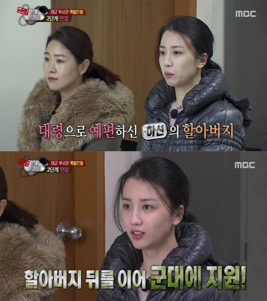 25일 방송된 MBC '일밤-진짜 사나이' 여군특집2에서는 멤버로 확정된 출연진들이 입소를 앞두고 여군 부사관 특별전형 면접을 보는 모습이 전파를 탔다.