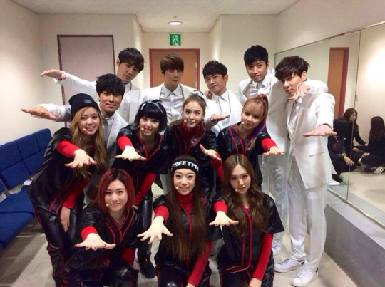 '해결사' 무대에 이어 소나무는 대선배 신화와 찍은 대기실 단체 인증샷을 깜짝 공개했다. 소나무 리더 수민(@SONAMOO_SuMin)이 트위터를 통해 신화와 소나무가 함께 찍은 단체 사진을 업데이트 한 것. 이들은 단체로 신화만의 독특한 인사법인 손을 쫙 펴고 앞으로 내미는 듯한 제스처를 취하고 한껏 웃는 얼굴을 한 채 카메라 렌즈를 응시하고 있다.