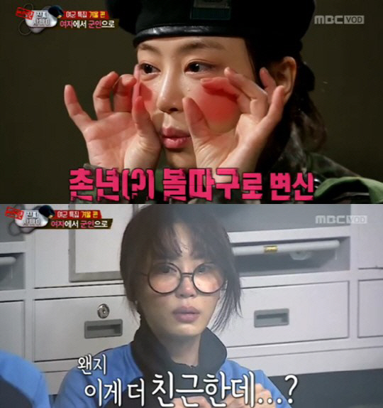 이날 강예원은 화장품을 모두 넣어서 보내야하는 상황이었고, 결국 소대장에게 "비비크림만은 허락해주면 안되느냐?"라고 물었다.