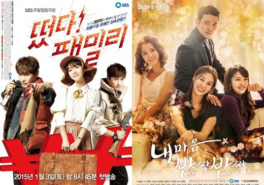 시청률 조사회사 닐슨코리아에 따르면 25일 방송된 SBS '떴다 패밀리'는 전국 시청률 2.9%, '내 마음 반짝반짝'은 2.3%를 기록했다. 두 드라마와 동시간대에 경쟁하는 MBC 주말극 '장미빛 연인들'(22.3%), '전설의 마녀'(30.9%)와 비교하기도 민망한 성적표다.