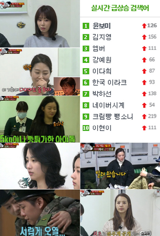 '진짜사나이' 여군특집2 인기가 뜨겁다. 실시간 검색어에는 멤버들 이름이 번갈아 가며 최상위권을 휩쓸고 있다. 시청률은 17.2%(전국기준)를 기록하며 동시간대 1위를 차지했다.