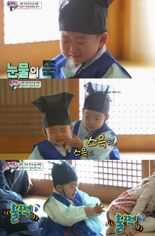 대한이 역시 형이란 이유로 훈장님에게 소환됐고, 훈장님의 말에 따라 동생 민국이의 울음을 닦아줬다.
