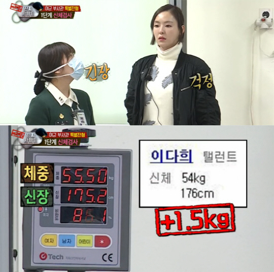 이다희는 프로필(54kg 176cm)과 거의 비슷했다. 신체검사 결과 이다희는 55.5kg에 175.2cm였다.