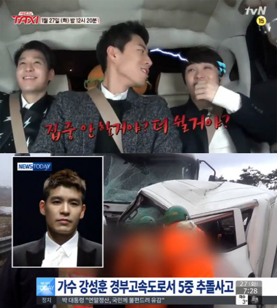 그룹 젝스키스 출신 가수 강성훈이 차량이 반파되는 5중 추돌사고를 낸 가운데, 오랜만에 방송 출연을 알렸다.