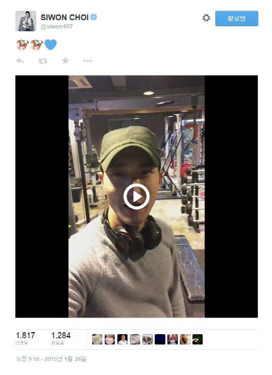 최시원은 동영상을 통해 "아침 운동 중이에요. 이제 트위터를 통해서도 비디오를 사용할 수 있게 됐네요. 즐거운 하루 보내세요. 그리고 저녁에 봐요. 트위터, 난 당신을 지켜보고 있어요! 유후~"라는 영어 인사말을 남겼다.