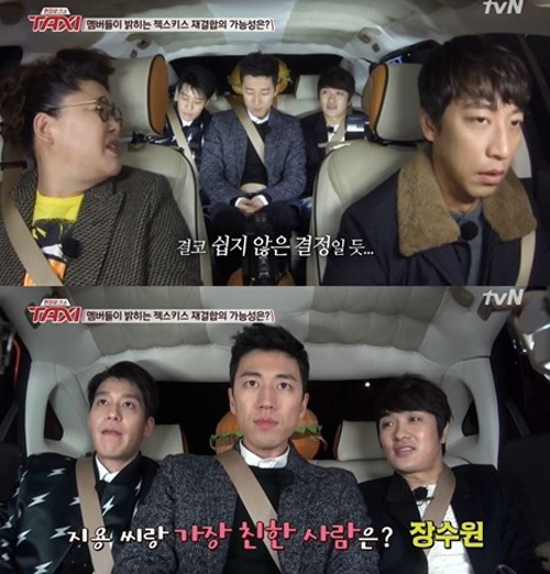 이날 MC들은 "젝스키스 해체 후 만난 적이 있느냐"고 물었고, 장수원은 "6명이 다 모인 적은 한 번도 없었다. 고지용을 빼고 지난해 5명이 만난 적은 있다"고 답했다.