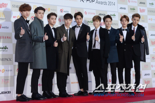 이날 엑소 리더 수호는 수상 소감에서 "오늘 함께 하지 못한 시우민과 이 영광을 함께 하겠다. 2015년 기대해 달라"고 밝혔다.