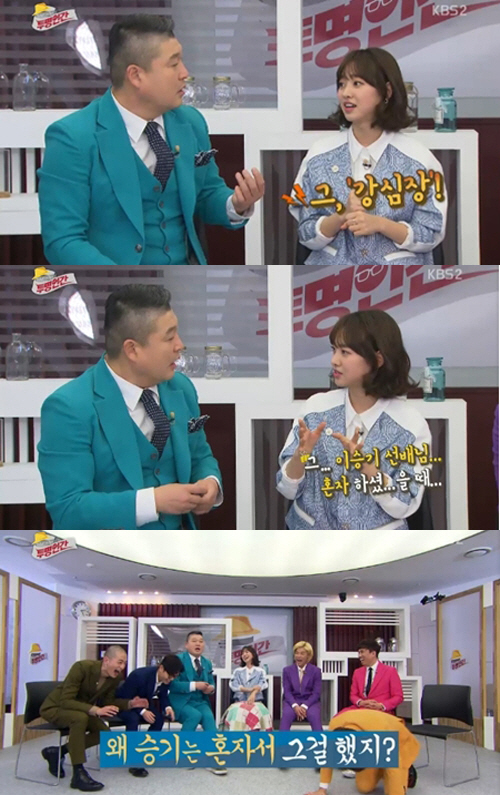 이에 당황한 강호동은 "왜 승기는 혼자 했을까"라며 능청스럽게 말했고, 다른 멤버들은 "그냥 웃자. 웃어넘기자"라고 수습해 웃음을 자아냈다. <스포츠조선닷컴>