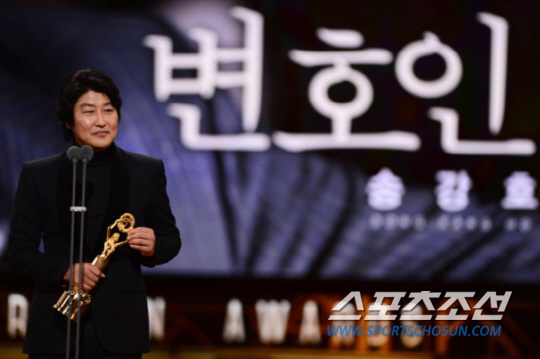 그렇다. 수상소감에서 말한 그대로다. 마지막 1년 대미를 장식해줘서. 지난해 마지막 시상식이기도 하고. '변호인'이 개봉한 지 만 1년 된 날이기도 했고, 나름의 의미가 있었다. 남우주연상을 받아서 기분이 좋았지만, 내심 작품상을 꼭 탔으면 했다. 그게 더 가슴 벅차더라.