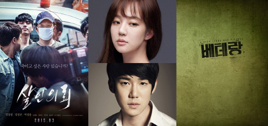 류승완 감독의 신작 '베테랑' 역시 기대감을 모으는 수작. 눈 앞에 있어도 잡을 수 없는 놈을 쫓는 베테랑 광역수사대의 이야기를 다룬 영화다. '부당거래'로 2011년 청룡영화상 최우수작품상을 거머쥔 류 감독과 황정민이 4년만에 다시 호흡을 맞추는 작품이다. 게다가 최근 '밀회'로 연기 호평을 받은 배우 유아인 오달수 유해진 정웅인 등 충무로 연기파 배우들이 대거 참여해 눈길을 끈다.