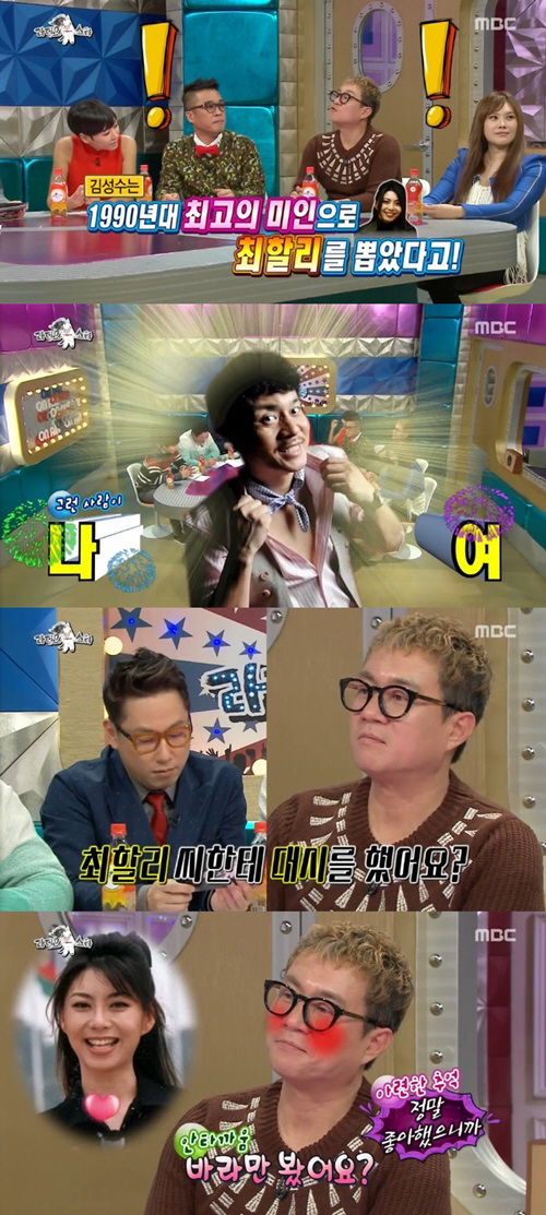 '라디오스타' 김성수가 90년대 대표 미인으로 VJ 최할리를 꼽았다.