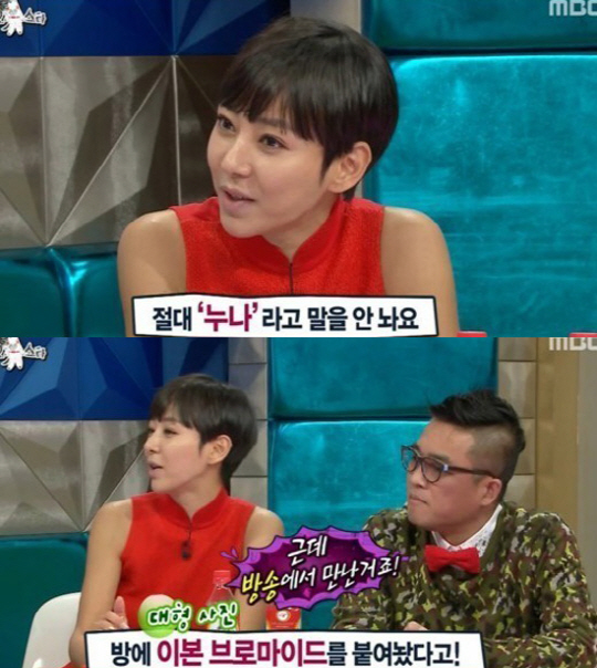 또 장우혁에 대해서는 "6살 연하다. 장우혁이 구미 출신인데 학교 다닐 때 방에 나의 브로마이드를 붙여놨다고 했는데 방송에서 만나게 됐다"며 "근데 절대 누나라고 하지 않았다. 누나라고 말하기 싫다고 딱 잘라 말하더라. 굉장히 마초 기질이 있고 매력 있다"고 설명했다. <스포츠조선닷컴>