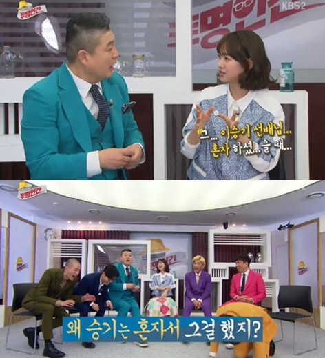 이에 당황한 강호동은 "왜 승기는 혼자 했을까"라며 능청스럽게 말했고, 다른 멤버들은 "그냥 웃자. 웃어넘기자"라고 수습해 웃음을 자아냈다. <스포츠조선닷컴>
