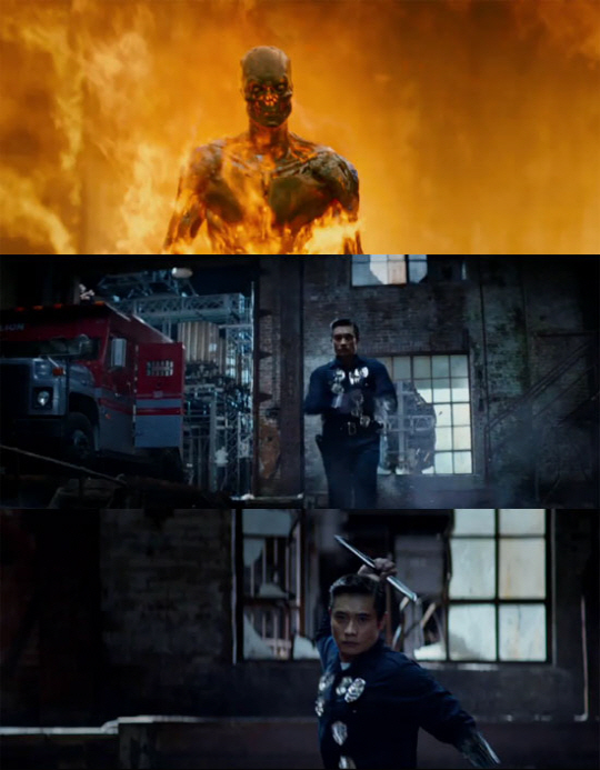 더불어 극 중 T-1000으로 강렬한 악역 존재감을 선보일 이병헌의 모습 역시 담겨 있어 눈길을 끈다.