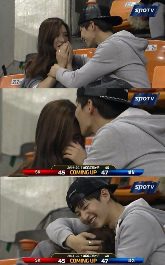 지난 29일 오후 서울 잠실학생체육관에서는 2014-2015 프로농구 서울 삼성과 서울 SK의 경기가 열린 가운데 MBC '우리 결혼했어요'에 출연 중인