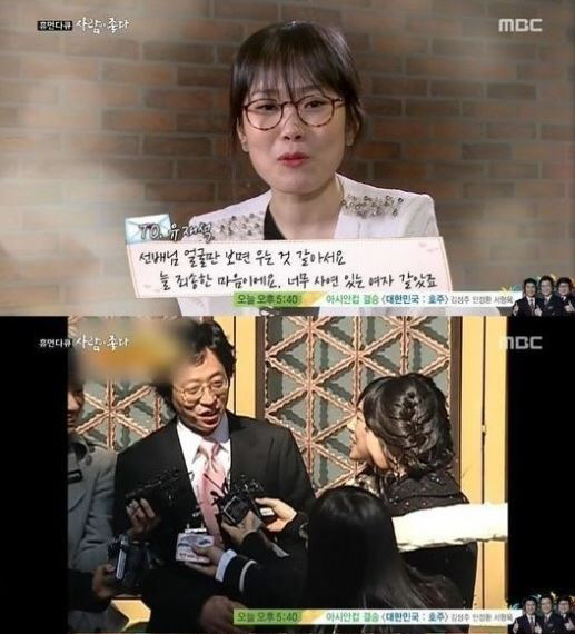31일 방송된 MBC '휴먼다큐 사람이 좋다'에 출연한 박슬기는 "선배님 얼굴만 보면 우는 것 같아서 죄송하다"고 유재석에게 영상편지를 전했다.