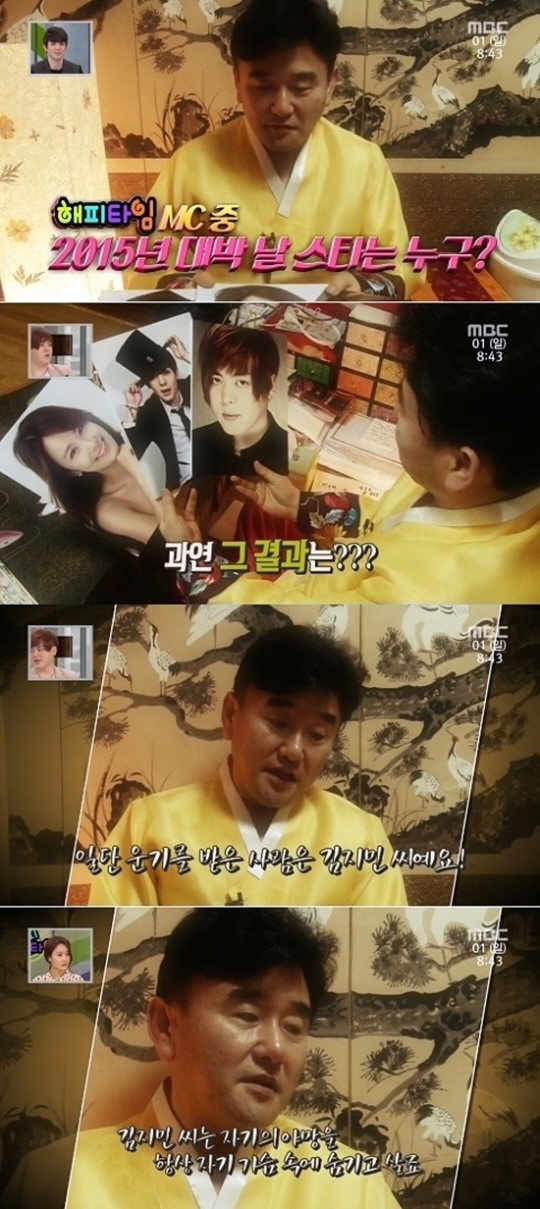 그는 해피타임의 MC인 문희준과 로빈, 김지민의 사진을 보고 "김지민은 훌륭한 MC로 발돋움할 것"이라고 예측했다. 가장 성공할 가능성이 높다고 판단했다.