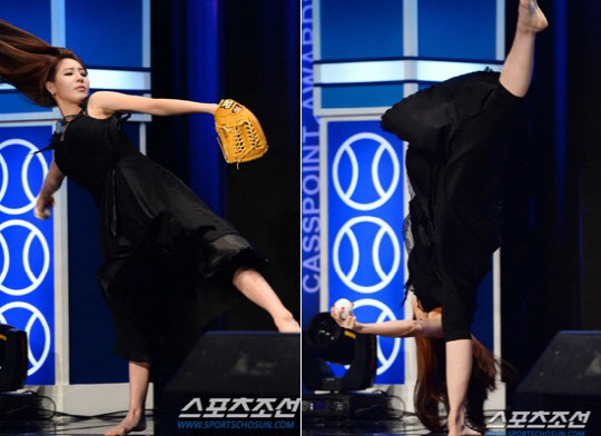 특히 신수지는 이날 NC 이재학을 포수로 앉혀 놓고 360도 회전 시구를 선보여 다시 한번 큰 호응을 받았다.