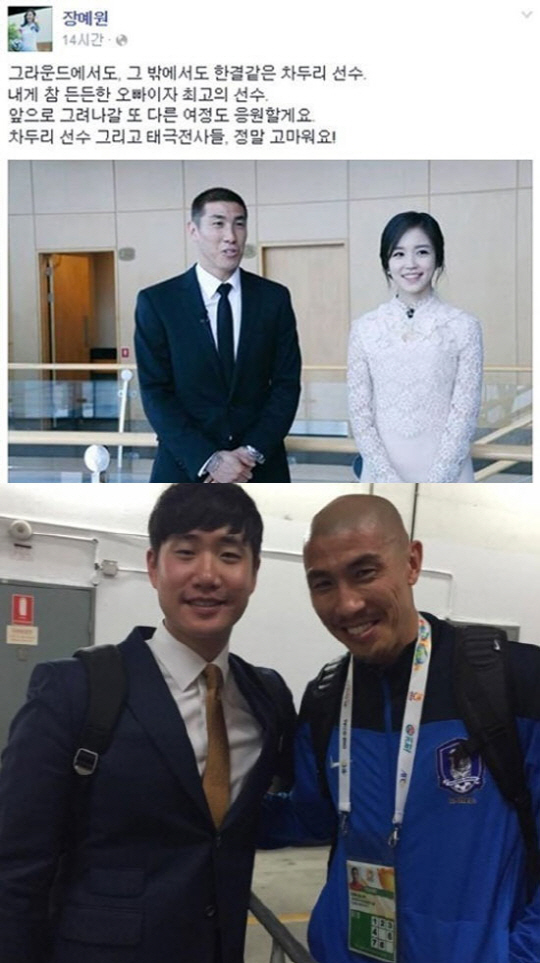 공개된 사진에는 SBS 아시안컵 결승전 생중계 화면으로 차두리가 준우승 메달을 수여받는 뒷모습이 담겨있다. 이어 배성재는 공항에서 출국하는 차두리와 인증샷을 찍으며 차두리의 마지막 국가대표의 모습을 남겼다.
