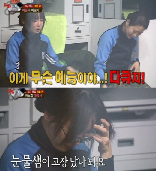 소대장의 도움으로 바느질을 시작한 강예원은 잘못된 위치에 주기표를 부착하고 주기표를 찢어버리는 등 계속되는 실수를 저질렀다. 소대장의 지적에 한참동안 눈물을 쏟은 강예원은 "이게 무슨 예능이야. 다큐지"라며 서러운 눈물을 쏟았다. <스포츠조선닷컴>