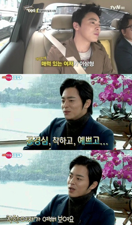 또한 조정석은 2012년 방송된 tvN '현장토크쇼 택시'에서 "외모가 예쁜 것보다 매력이 있는 여성에게 더 끌린다. 투애니원의 씨엘이 이상형이다. 정말 멋진 것 같다"며 재차 이상형을 언급했다.