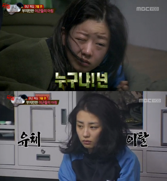 1일 오후 방송된 MBC '일밤-진짜 사나이' 여군특집 2편에서 멤버들은 아침 민낯이 공개됐다.