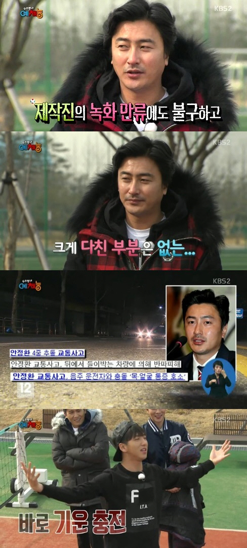 이는 안정환이 녹화 몇 시간 전 4중 추돌사고를 당했음에도 아픈 몸을 이끌고 녹화에 참여했기 때문.