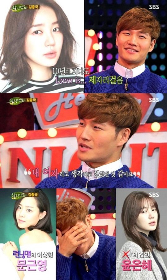 김종국은 성유리, 수지, 윤은혜 등 쟁쟁한 후보들 속에서 행복한 미소를 지었는데, 특히 지난 2005년 SBS '일요일이 좋다-X맨'에서 공식연인으로 활약했던 윤은혜가 거론될 때마다 당황한 기색을 감추지 못했다.