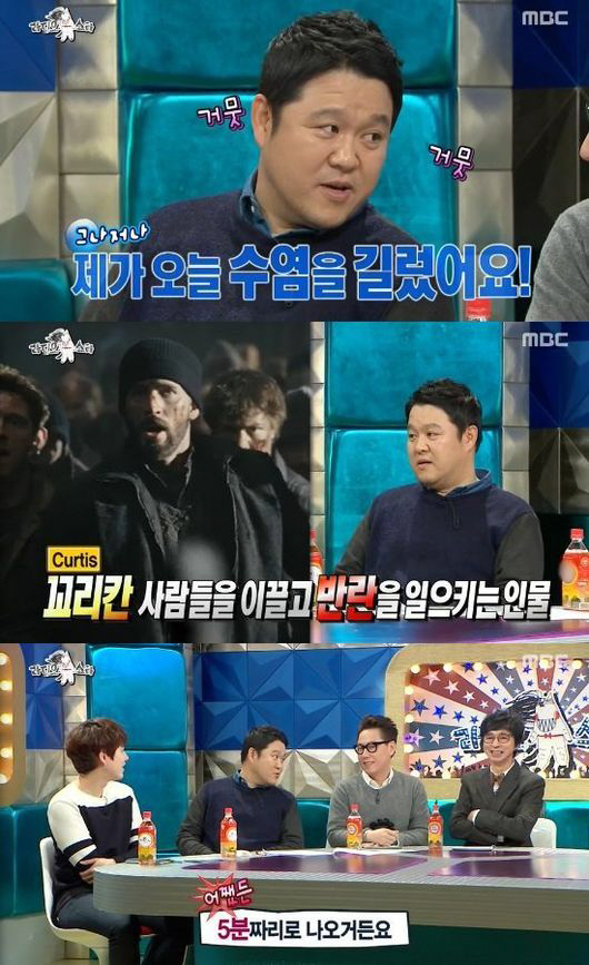 이날 방송에서 김구라는 "(촬영을 위해)수염을 길렀다"며 "설을 목표로 봉만대 감독의 '떡국열차'에 출연하기도 했다"고 말했다.