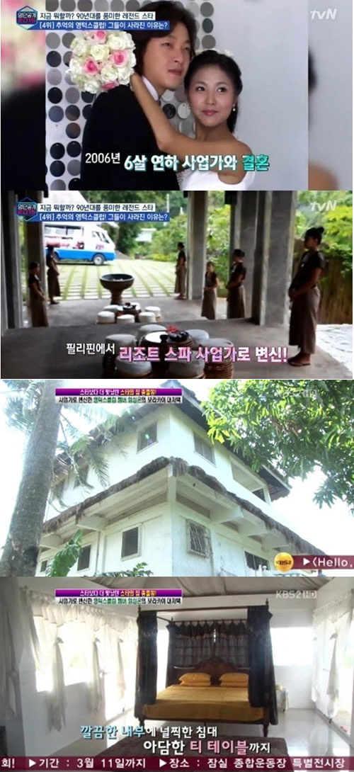 한편 1992년 솔로 가수로 데뷔한 임성은은 1995년 투투의 객원멤버로, 1996년에는 영턱스클럽의 리드보컬로 세상에 이름을 알렸다. 지난 2006년 리조트사업가 송진우 씨와 결혼, 필리핀 보라카이에 거주하며 리조트 스파CEO로도 활동하고 있다.