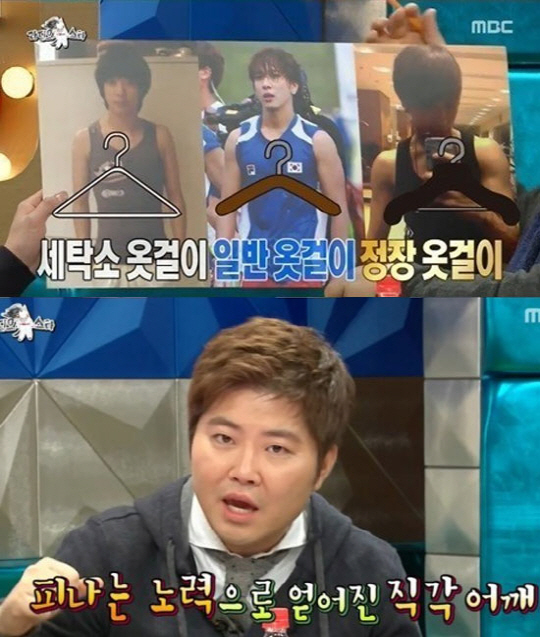 이날 MC들은 정용화의 어깨변화 사진을 보이며 과거 좁은 어깨에서 최근 어깨깡패로 거듭난 모습을 보였다.