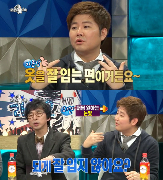 이날 한성호 대표는 "제가 패션에 관심이 많아서. 제가 옷을 제일 잘 입는 편이거든요"라며 MC들에게 자랑하듯 말했다. 그러자 김구라는 "룩(look)을 봐야겠다"라며 앉아있던 한성호를 불렀다.