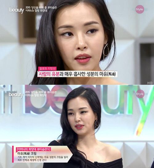 이날 이하늬는 기초 스킨케어 단계 마무리로 마유 크림을 꼭 사용한다고 밝혀 이목을 사로잡았다. 그는 "마유크림을 바르고 자면 에스테틱에 다녀온 것처럼 피부가 쫀쫀해지고 수분이 꽉 찬 느낌이 든다. 특히 겨울에는 피부도 건조해져서 제 경우 이런 제형의 제품을 많이 바르는데, 그럴 때 마유크림이 제격"이라고 극찬했다.