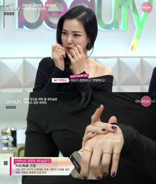 지난 4일 첫 방송된 온스타일 '겟잇뷰티 2015'에서 MC 이하늬는 자신만의 뷰티 습관을 공개하며 '마유크림'을 소개해 눈길을 끌었다.