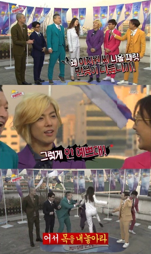 이날 등장한 최여진은 강호동의 품에 안겼고, 이에 하하는 강호동에게 "왜 하지원 나올 때랑 반응이 다르냐"고 지적했다.