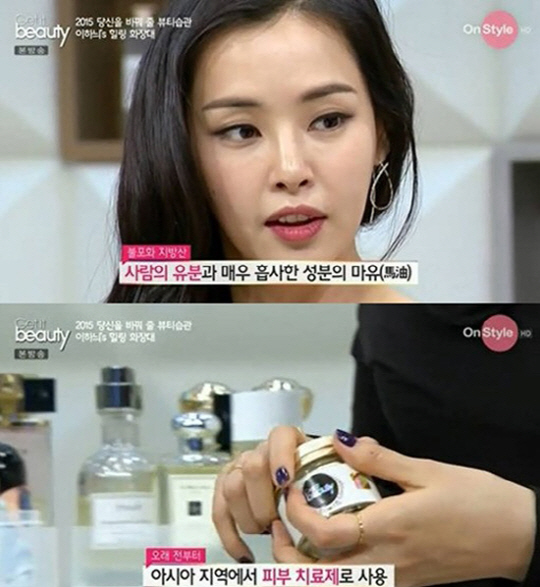 이날 이하늬는 "기초 케어 마무리 할 때 중요하게 생각하는 게 마유(馬油) 크림이다"라고 밝혔다.