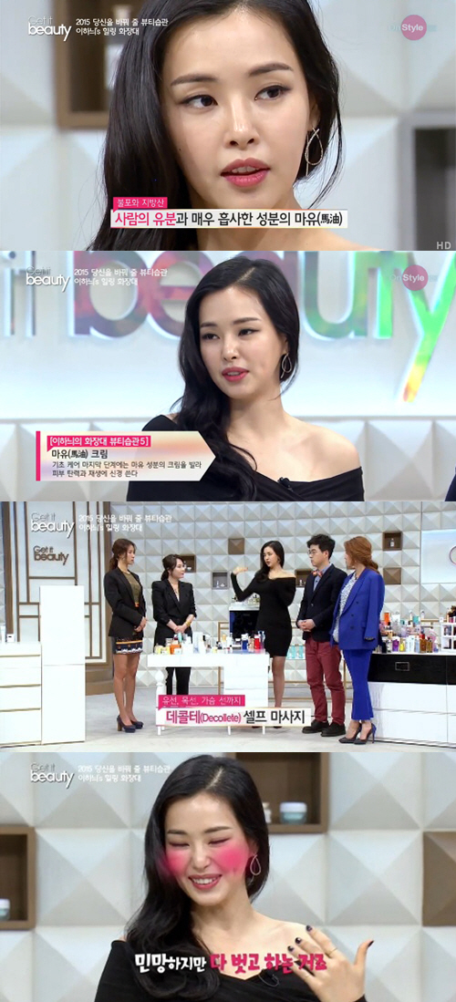 지난 4일 첫 방송된 온스타일 '겟잇뷰티 2015'에서 MC 이하늬는 자신만의 뷰티 습관을 공개하며 '마유크림'을 소개했다.