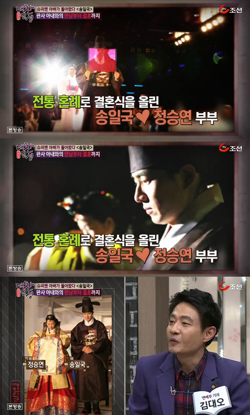 이어 "두 사람은 처음 만난 날 오후 3시부터 자정이 될 때까지 이야기를 나눴다. 송일국이 정승연 판사를 보고 첫눈에 반했다"며 "두 사람이 소개팅한 날이 광복절인데 당시 송일국이 '내 인생에도 광복이 왔다'고 말했다더라"고 덧붙였다.