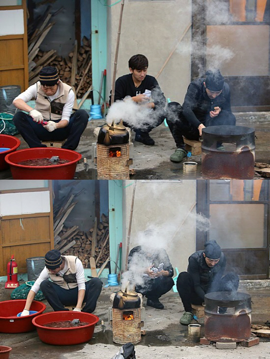 공개된 사진 속 손호준은 음식을 준비하는 유해진과 차승원 사이에 우두커니 앉아 있는 모습이다.