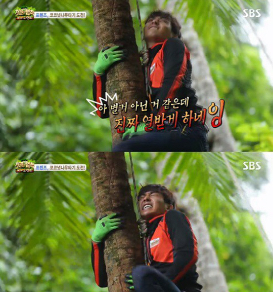 '정글의 법칙' 손호준이 코코넛 나무타기에 도전하던 중 발끈하며 웃음을 선사했다.