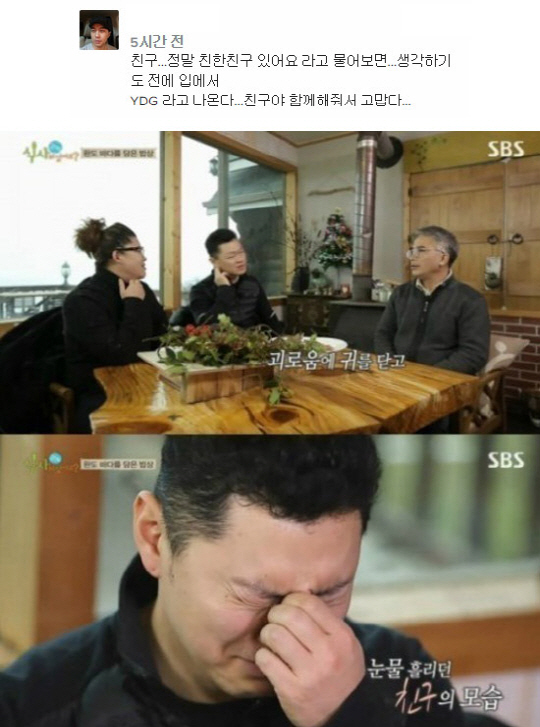 또 "제가 힘들었을 때 일으켜 세워준 친구다. 저랑 이야기하다가 울더라. 되돌려 생각하면 정말 감사한 친구다"면서 눈물을 쏟았다. <스포츠조선닷컴>
