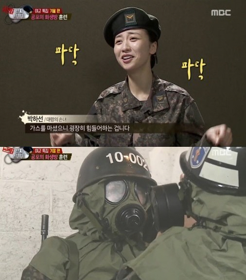 8일 방송된 '진짜사나이'에서 박하선은 화생방 훈련을 받던 도중 정화통을 결합하지 못해 힘겨워하는 동료 강예원을 돕는 모습을 보여줘 훈훈함을 선사했다. 그 결과 박하선, 강예원과 함께 화생방 훈련을 받은 김지영, 엠버는 전원 통과의 기쁨을 누렸다. 박하선은 이 외에도 평소 생활간 동기들을 챙기고 도우며 여군다운 면모를 갖춰나가고 있다.