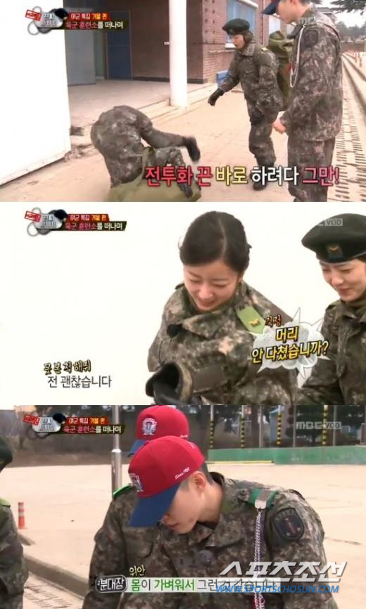 이에 분대장과 안영미는 "괜찮냐"며 윤보미를 일으켰고 크게 넘어진 윤보미는 "괜찮습니다"를 연발했다. 분대장은 "몸이 가벼워서 그런 것 같다"며 윤보미를 위로했다. <스포츠조선닷컴>