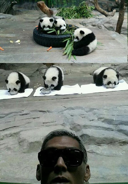 박준형은 9일 자신의 트위터에 "안녕. 아가들아. 보고 싶을 거야. 특별히 쿠쿠. 안녕. 어린 판다"라는 글과 함께 판다와 함께 한 자신의 모습을 담은 사진을 게재했다.