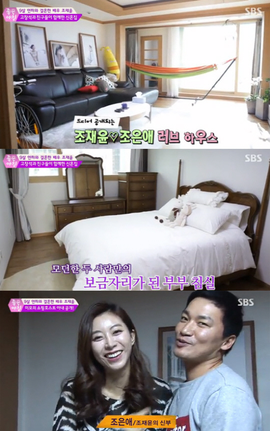 이날 조재윤은 9살 연하 아내 조은애씨와 함께 살게 된 신혼집을 공개했다. 조재윤은 아내를 위해 갤러리처럼 신혼집을 꾸몄고, 아내를 위해 드레스룸은 물론 서재까지 마련했다. 침실은 모던하고 심플했다.
