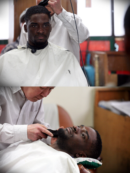10일 MBC 측은 입영을 위해 군부대 앞에 도착한 샘 오취리와 임원희가 부대 앞 허름한 이발소에서 머리를 자르는 모습이 담긴 사진을 공개했다.